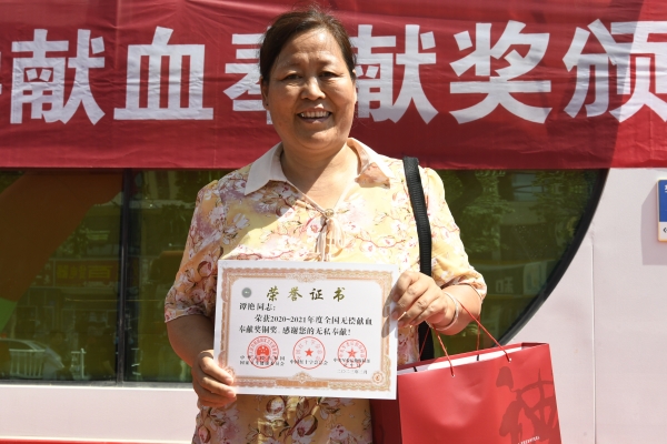 55岁的谭艳今天以获奖代表的身份上台领取了“全国无偿献血奉献奖”铜奖。她长达十余年的献血之路是从一个善意尝试开始的。“2009年我和两位朋友一起相约献血,想奉献一点爱心,献完血后发现身体没有任何异常,于是就觉得,献血这么简单的一个动作就能救人一命,我怎么没早点献呢?”从那以后,谭艳坚持每年献血1-2次,她的两位好朋友也同样坚持了下来。每当献血间隔期到了,互相打电话问候对方是否献血,已经成为三个人之间的默契。在谭艳的影响下,儿子也成为一名无偿献血者。“儿子在大学已经献血2次,打电话告诉我的时候,我表示很支持,我对他说一定要坚持,这样你献血的次数就能超越我了。”谭艳笑着说。