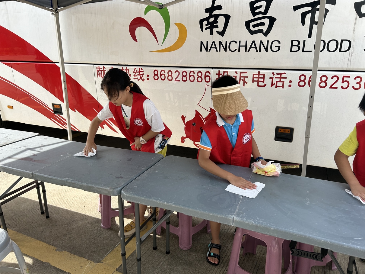 今天是2023年放暑假以后小同学们第一个自愿者日。第一个参与的是蒋若雪小朋友,她是从去年暑假成为一名无偿献血小志愿者的,整整一年的时间,妈妈只要有空就风雨无阻带她来参与活动,不仅如此,妈妈也经常留下来一起的服务献血者。今年她还带上了她的2名小伙伴一起加入小志愿者的行列。就是这么可爱的小志愿者,不紧成为我们的小帮手,也成为我们和献血者之间的一座桥梁。