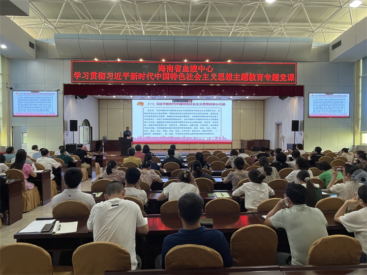 为深入学习贯彻党的二十大精神,持续推动中心学习贯彻习近平新时代中国特色社会主义主题教育活动走深走实。6月29日下午,省卫生健康委科教处处长(代管省血液中心)陈斌同志以“用习近平新时代中国特色社会主义思想补钙铸魂 用热血铸就海南健康岛建设者使命担当”为题讲授主题教育专题党课。中心党员干部职工约210人参加学习。