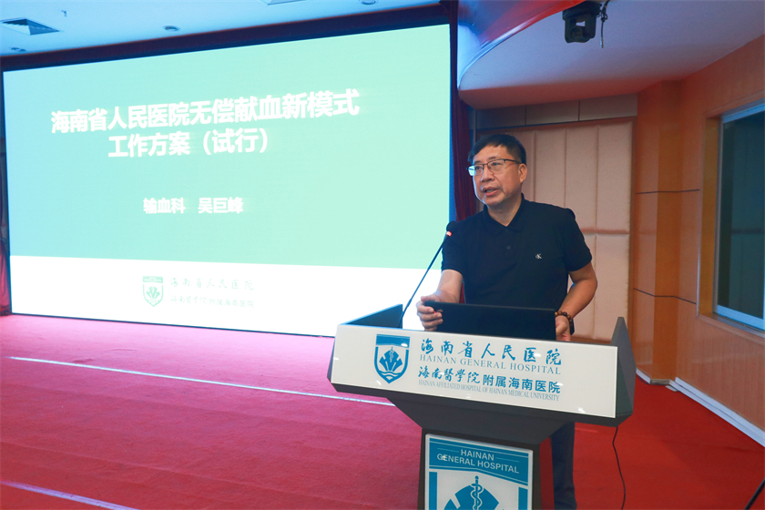 培训班上,海南省人民医院输血科主任吴巨峰对海南省人民医院无偿献血新模式工作方案进行讲解。吴主任说,医疗机构应当将无偿献血纳入健康教育内容,积极主动向患者、家属及社会广泛宣传,鼓励健康适龄公民自愿参加无偿献血,提升群众对无偿献血的知晓度和参与度。海南省人民医院将进行全员培训,对全院医护人员进行无偿献血相关知识和政策培训、讲解,以及新模式具体操作流程培训。医院还将通过以下几个方面建立新模式长效机制,一是利用医院宣传平台、室内电子屏和室外宣传栏大力宣传无偿献血知识和献血感人事迹、用血直免政策。二是定期对新模式工作成效(患者满意度和动员献血率)进行评价;加强监管,及时发现问题并整改;经验总结推广。三是不断更新制作宣传资料,挖掘有效宣传手段和渠道。四是定期开展无偿献血宣传活动,邀请患者和家属一起开展“献血者”和“受血者”说等活动。五是建立医院医务人员无偿献血宣传志愿者队伍。六是发动长期用血患者(地中海贫血、白血病等等)及亲友成立无偿献血宣传志愿者队伍,从无偿献血受益者的角度协助医院宣传。