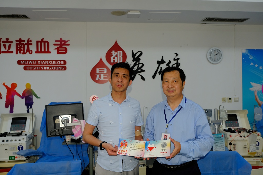 “我有5个人生目标。第一个目标是捐献一次双份的机采血小板,这个目标已经在2017年的时候完成了;第二个目标是拿到‘国家无偿献血奉献奖’的金奖,我已经连续在2014-2015年度和2016-2017年度两次获得金奖;第三个目标就是献血100次,在今天也完成了;我的第四个目标是获得‘浙江省无偿献血特别奉献奖’,据我所知这是全国最难拿的一个奖项,需要献血达30000毫升(150次)以上;我的第五个目标也是终极目标,就是在60周岁之前完成500次献血记录,这需要我在今后的几十年中一直保持一个良好的身体条件,我也以此鞭笞自己注意锻炼身体,注意健康饮食。”——平凡而伟大的5个人生目标,朴实而又不平凡的人生。