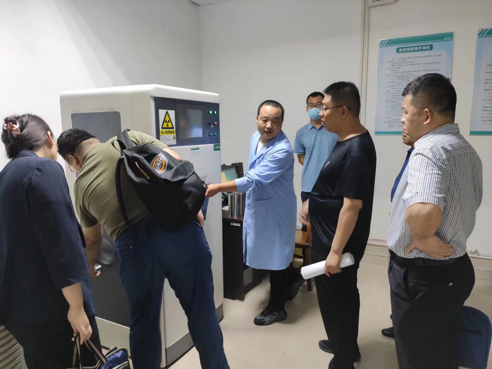 6月30日,由省公安厅、生态环境厅联合开展的2023年省核技术利用单位联合监督检查组,会同市、区公安部门,市、区生态环境局对我站放射源情况进行了联合监督检查。淄博市中心血站副站长姚建及相关科室负责人陪同本次检查。