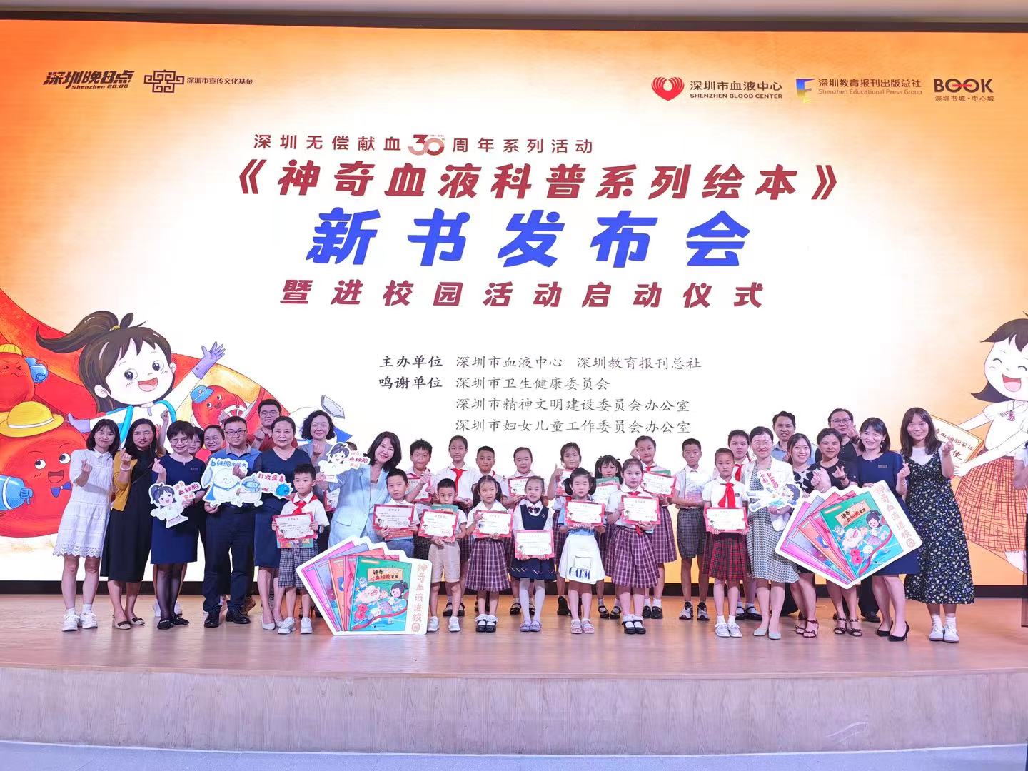 由深圳市血液中心牵头、联合深圳教育报刊总社创作的全国首套血液健康儿童绘本——《神奇血液科普系列绘本》在深圳书城中心城正式发布!当天活动结合新书发布+进校园的实践主题,在现场与市民读者们一起从“一米的高度”探索,用儿童的眼光,共同揭开“神奇血液”的秘密。市文明办、市妇联、市血液中心、市教育报刊总社等部门有关负责同志出席新书发布会。