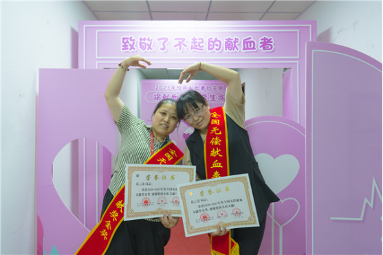 葛云慧、葛云弟是荣获这次全国无偿献血奉献奖的“金奖姐妹花”,妹妹葛云弟从97年就与无偿献血结缘,都说大爱可以感染人,可以引导人,更能吸引人,因为妹妹平时潜移默化的引导,加之汶川大地震时想为同胞出一份力的心意,姐姐也毅然加入了无偿献血队伍,并坚持至今。这次姐妹俩双双获得金奖,对着镜头她们开怀比心,并笑称要将无偿献血一直进行下去……