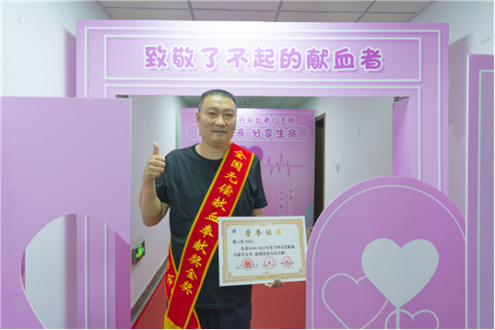今年29岁的郑甜是一个8个月孩子的宝妈,收到2020-2021年度全国无偿献血奉献奖的证书领取短信之后,她特意带着孩子前来打卡记录属于自己的荣耀瞬间。作为此次奉献奖金奖获得者,她激动却也不失坦然,“从18岁第一次参加无偿献血,我便告诉自己这是一项有爱的事业,要一直坚持下去,转眼已经十一个年头了,但我希望能有第二个、第三个这样的十一年,也希望我的勇气和爱心能够给宝贝树立一个好榜样。”