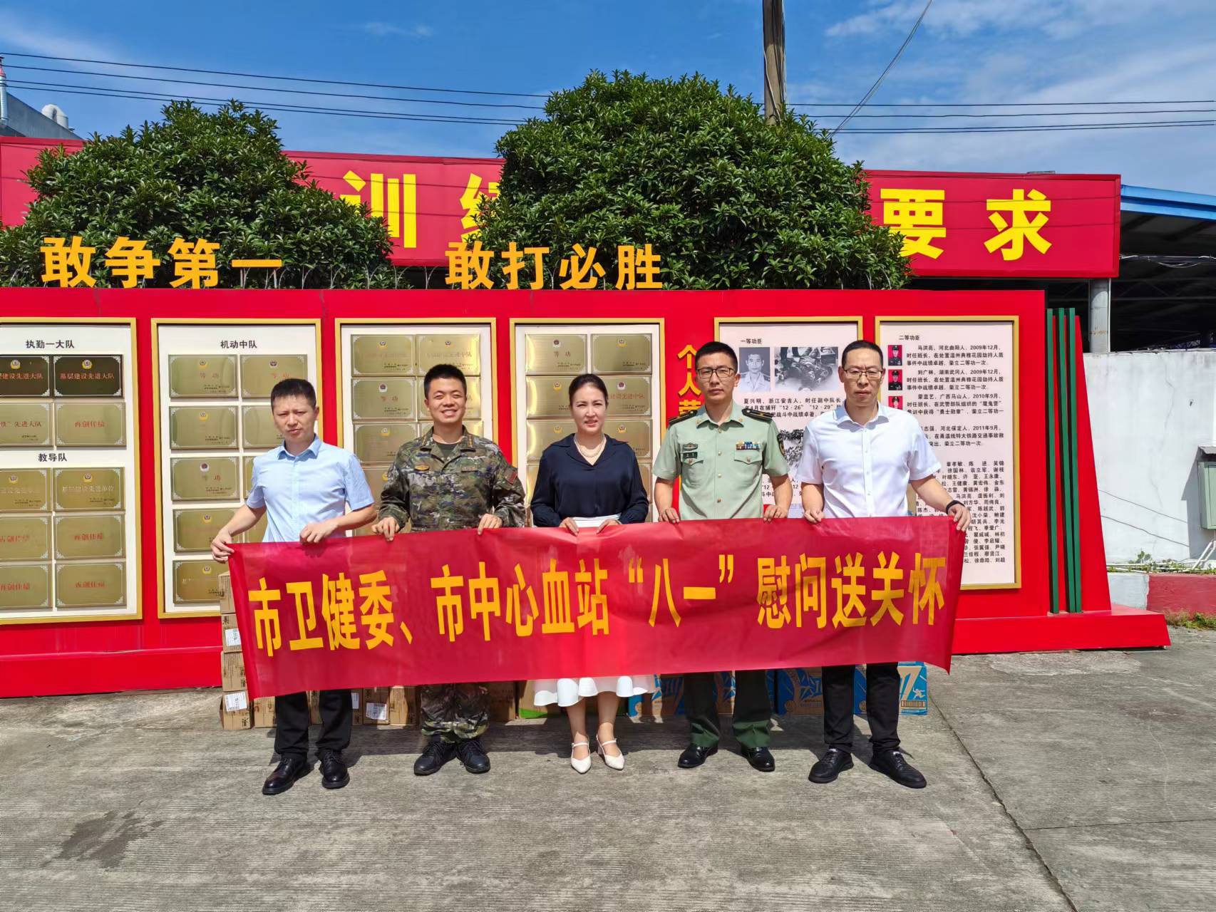 为感谢驻温部队对温州市无偿献血事业的大力支持,庆祝中国人民解放军建军96周年,21日上午,市卫健委副主任帕提古丽.阿卜力克木及市中心血站党总支书记、站长陈栋,党总支副书记(专职)林杰等一行前往献血活动现场,开展“八一”慰问活动,向武警温州支队官兵致以诚挚的问候和节日的祝福,对无私挽袖的武警官兵表示衷心的感谢。