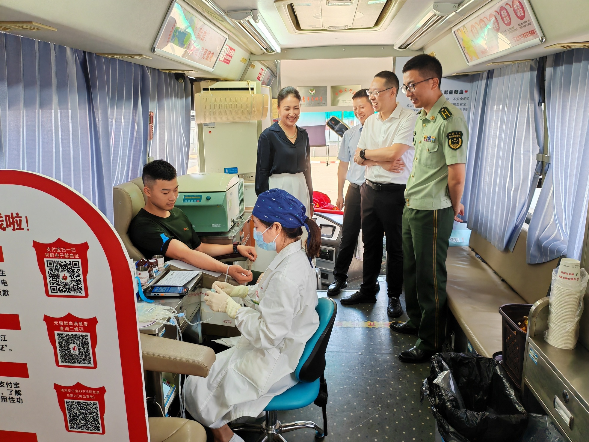 活动现场,一切准备工作就绪后,党员干部模范带头,参与献血的武警官兵们迅速集结、列队等候,在血站工作人员的引导下有条不紊地进行着献血前的各项检查,严整的军姿彰显饱满的精神,挽袖的义举诠释为民的初心。