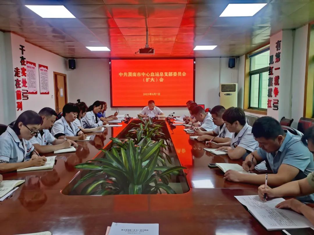 8月7日,渭南市中心血站召开党总支(扩大)会议,学习习近平总书记在四川、陕西汉中考察时的重要讲话重要指示精神,传达学习省委十四届四次全会和市委六届五次全会精神,研究贯彻落实市卫健委党组扩大会议精神的具体措施。血站党总支书记、站长严胜利主持,领导班子成员、各科室负责人参加会议。