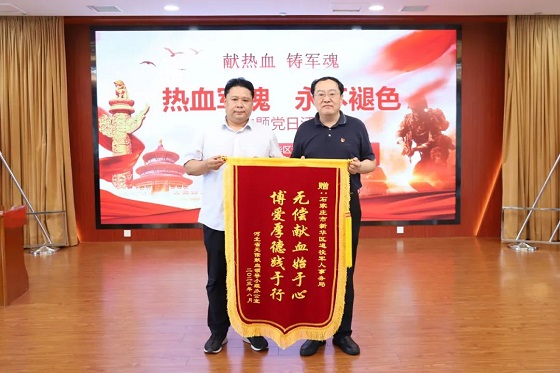 为庆祝中国人民解放军建军96周年,不断提升和丰富双拥工作内涵,8月2日,省血液中心联合共建单位石家庄市新华区退役军人事务局及辖区部分2023年政府安排转业退役士兵共同开展“热血军魂 永不褪色”主题党日活动。