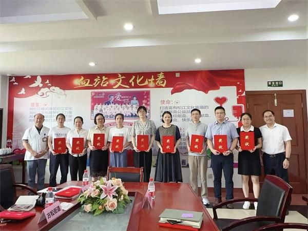 区血站党支部书记陆军宣读表彰决定,表彰了2022年度松江区荣获上海市社区、企事业单位献血工作考核优秀集体和优秀个人,进一步弘扬无偿献血新风尚。