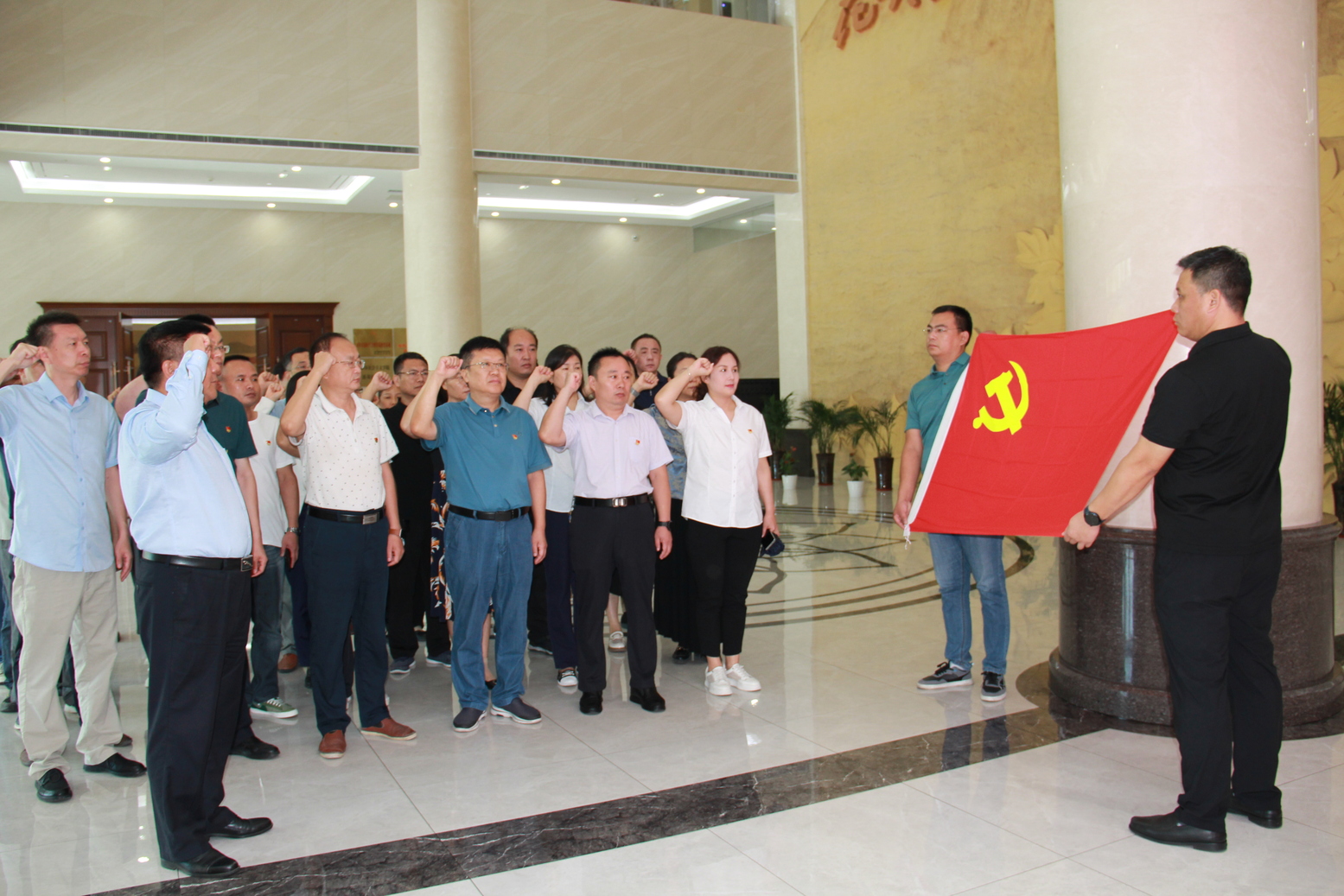 最后,全体人员在鲜红的党旗下重温入党誓词,郑重宣誓,一句句铿锵有力的誓词,让党员们牢记对党的庄严承诺,不忘入党初心,以更加坚定的理想信念为党的事业奋斗终身。本次活动,是血站加强党风廉政建设和反腐败工作的具体举措,充分体现了血站反腐倡廉的坚强决心,给党员们上了一堂形象、生动、震撼的廉政教育课。大家纷纷表示,在今后的工作中一定把纪律规矩挺在前面,时刻保持清醒头脑,心存敬畏、坚守底线,切实筑牢拒腐防变的思想道德防线,以实际行动助推采供血工作再上新台阶。