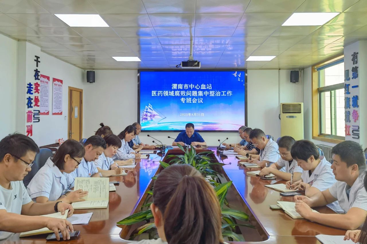 会议组织学习了《关于开展全市医药领域腐败问题集中整治督导检查工作的通知》《关于明确集中整治问题清单及职责分工的通知》《渭南市中心血站关于深入开展医药领域腐败问题集中整治自查自纠工作的通知》,就集中整治具体分工、全面推进工作进行安排部署。