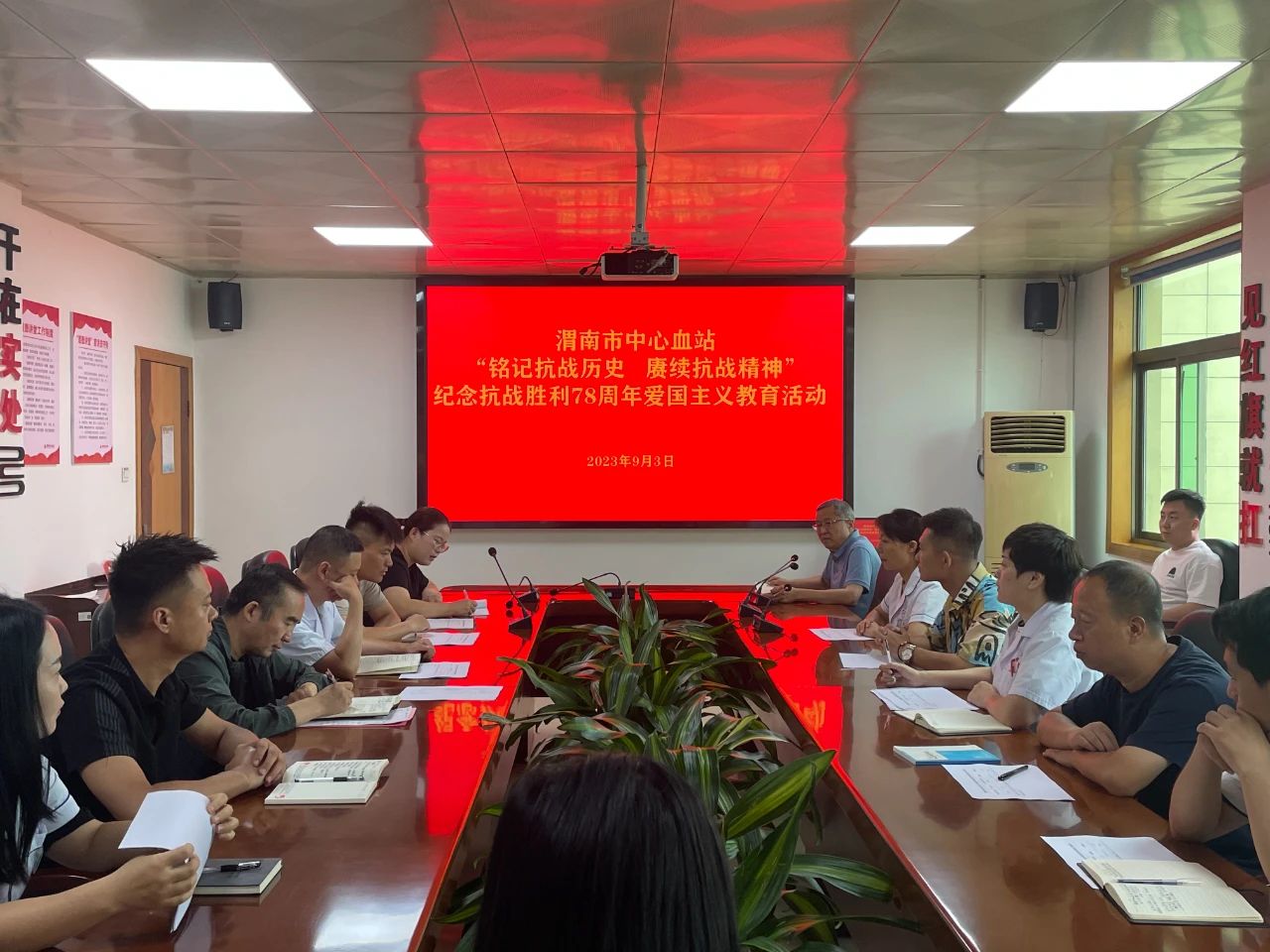 为纪念中国人民抗日战争暨世界反法西斯战争胜利78周年,弘扬爱国主义为核心的伟大民族精神,9月3日,渭南市中心血站组织干部职工开展了“铭记抗战历史 赓续抗战精神”爱国主义教育活动。