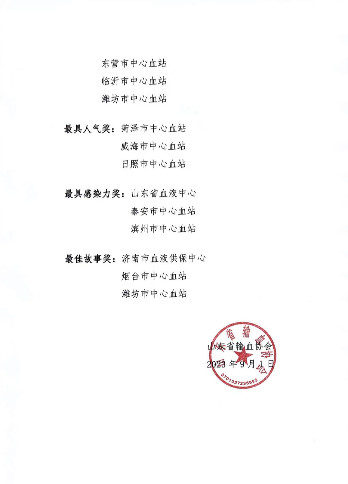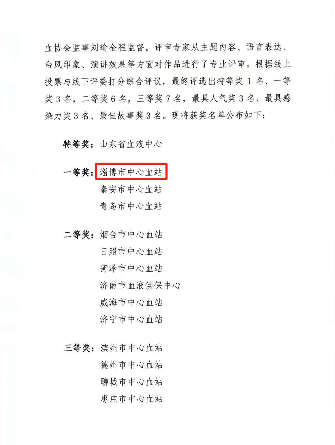 9月1日,由山东省输血协会主办、山东省血液中心承办的“闪耀的红”山东省无偿献血者优秀事迹演讲活动获奖名单公布,淄博市中心血站选送的作品《热血青春》荣获一等奖。