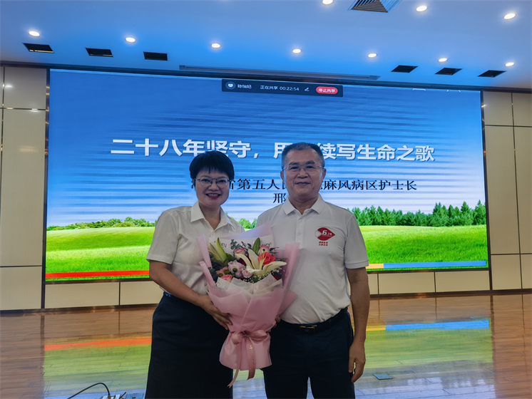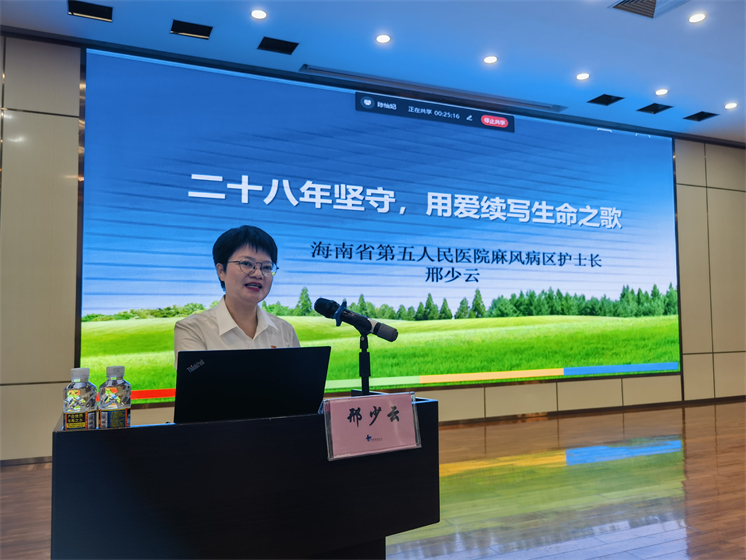 在宣讲会上,邢少云同志以《二十八年坚守,用爱续写生命之歌》为题,用质朴的语言、鲜活的实例讲述了自己28年来坚守麻风护理岗位,深耕麻风病防治,以实际行动践行白衣天使救死扶伤的神圣职责,用爱心、耐心、细心、责任心照护每一位麻风病人的感人故事。