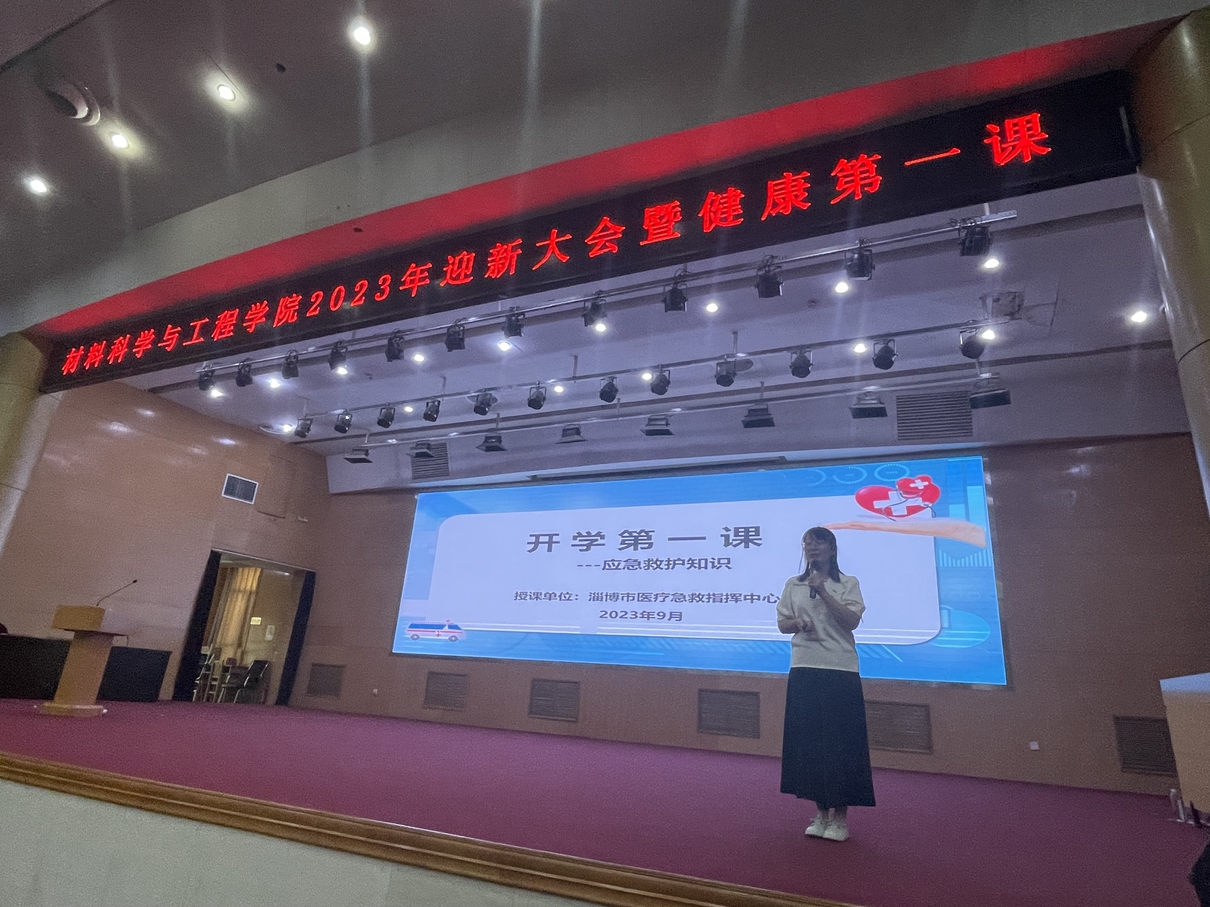 9月是全民健康方式宣传月,为引导大学生树立“大健康”理念,提升大学生健康知识知晓率,结合全省“四促四进四提升”活动要求, 9月16日上午,“健康第一课”公益讲堂正式开讲,来自市疾控中心、市120急救指挥中心和市中心血站的科普专家走进山东理工大学材料科学与工程学院为2023级300多名新生进行了烟草控制、常见传染病防控、急救、无偿献血等健康知识健康宣讲。