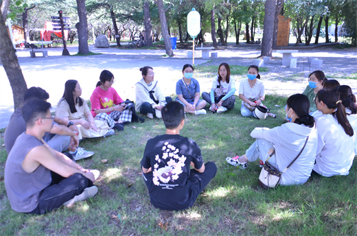 参观结束后大家意犹未尽,一场“草坪交流会”在绿茵之上随即开展。青年学习社的同志们畅谈研学体会,汲取奋进力量。不同的观点与看法交流“碰撞”,沉浸式体验将爱国主义精神埋进心灵深处。