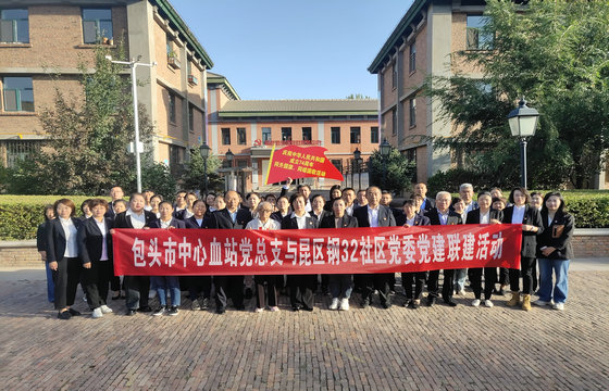 2023年9月26日清晨,包头市中心血站党总支组织站内所有党员及各科室非党中层干部前往“双报到,双服务,双报告”工作包联社区钢32社区,与社区党员共同参加了庆祝中华人民共和国成立74周年“同升国旗、同唱国歌”主题党日活动。
