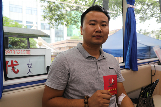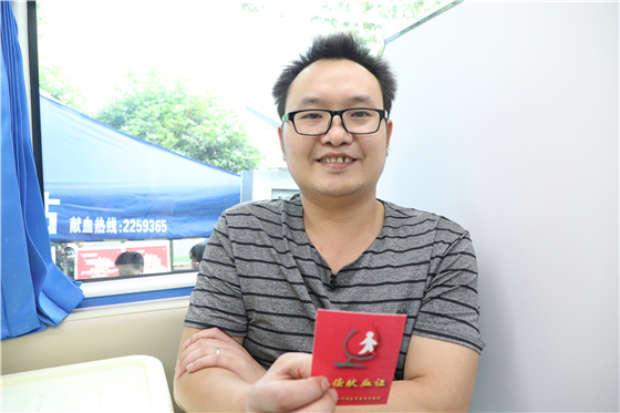 “两年都没献血,这次社区搞活动就过来了。”献血者周余位说,“2007年的时候,我看了电视上的无偿献血宣传片,就跑去东风路的中心血站试着献了第一次血,之后又了解到献成分血更能帮助到病患,于是也开始献血小板了。”