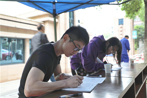 (卜里坪街道居民填写无偿献血征询表)