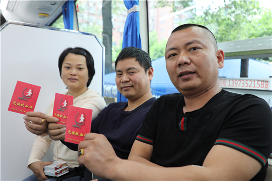 (献血者周余位(中)和他的妻子何爱、弟弟周成)