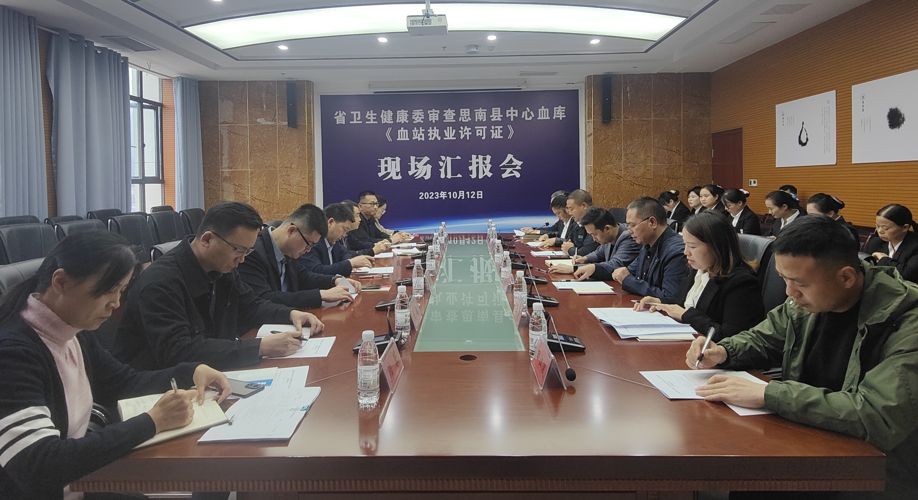 2023年10月11日-12日,由省卫生健康委派出专家组对思南县中心血库执业换证验收工作进行技术审查。省卫生健康委医疗应急处一级调研员陈鑫带队,省血液中心主任崔欣任专家组组长,省血液中心相关同志任专家组成员。