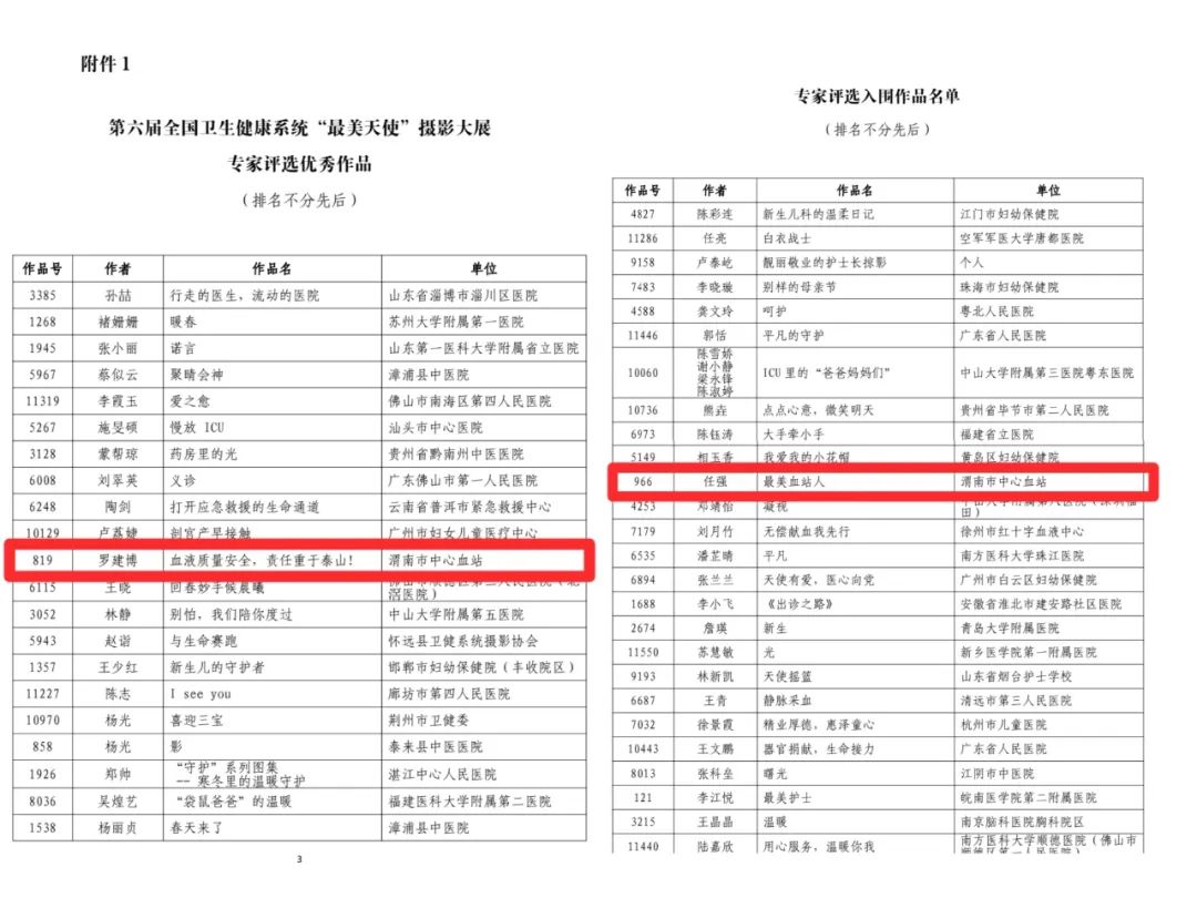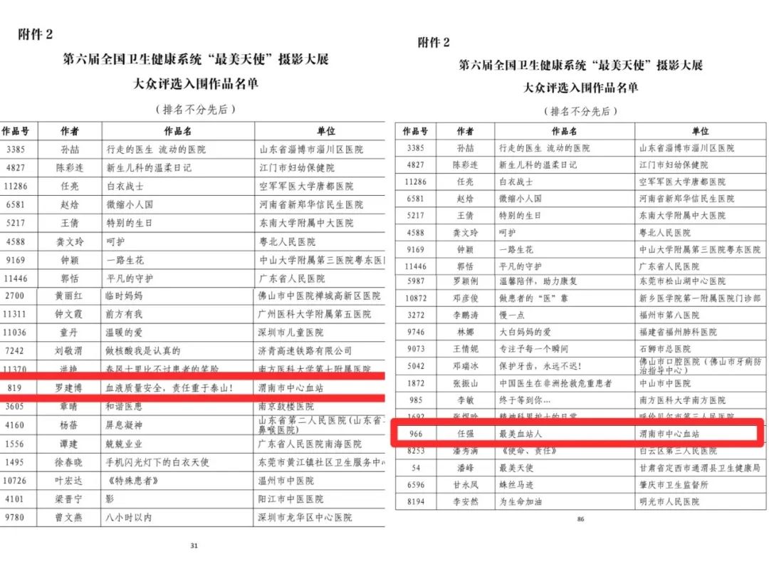 来自全国32个省区的4913位作者参与了投稿,共收到作品10489幅(组)。经过投稿、作品展示、作品传播、专家评审、总决赛和公布结果等环节,我站罗建博投稿的819号作品《血液质量安全,责任生于泰山》荣获专家评选优秀作品及大众评选入围作品;任强投稿的966号作品《最美血站人》荣获专家评选入围作品和大众评选入围作品。
