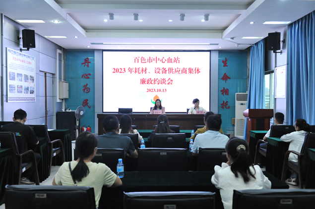 为进一步从源头上遏制医药购销领域不正之风,持续营造良好政治生态,全面建设清廉血站,推动反腐败工作不断取得新成效、再上新台阶。10月13日,百色市中心血站在六楼会议室召开供应商集体廉政谈话会。血站党支部书记、站长梁朦尹出席会议并讲话,相关科室负责同志及部分关键岗位人员及供应商代表参加会议。会议由市中心血站党支部副书记、副站长覃宁同志主持。