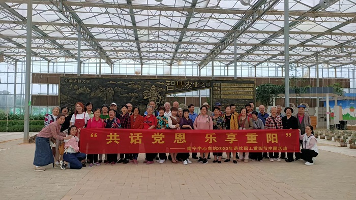 重阳节是中华民族传统的敬老节日,为弘扬中华民族爱老敬老的优秀传统美德,增强退休职工的满足感、获得感、幸福感,2023年10月19日,南宁中心血站组织全体退休职工开展以“共话党恩,乐享重阳”为主题的重阳节活动。