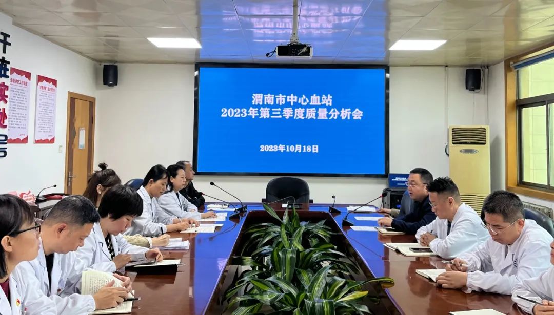 为持续强化采供血质量管理,进一步提升献血服务质量,保障血液产品安全有效,10月18日上午,渭南市中心血站召开2023年第三季度质量分析会,全面分析评估质量管理体系运行情况。站领导班子成员、各科室科长及质量监督员、质量管理科全员参加会议。