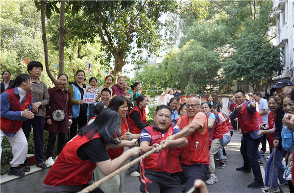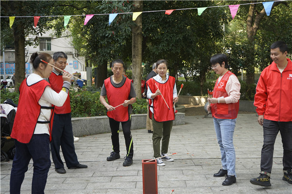 10月23日,花园里社区“幸福邻里节”在嵩山路小广场拉开序幕。应社区邀请,株洲市中心血站党员干部职工精心准备了“投壶”“滚铁环”两项游园活动、精美小纪念品,并组织了一只实力强劲的拔河队参加社区比赛,在经过与市税务局、农商银行黄河路支行、惠洁物业代表队依次鏖战后,勇夺桂冠。