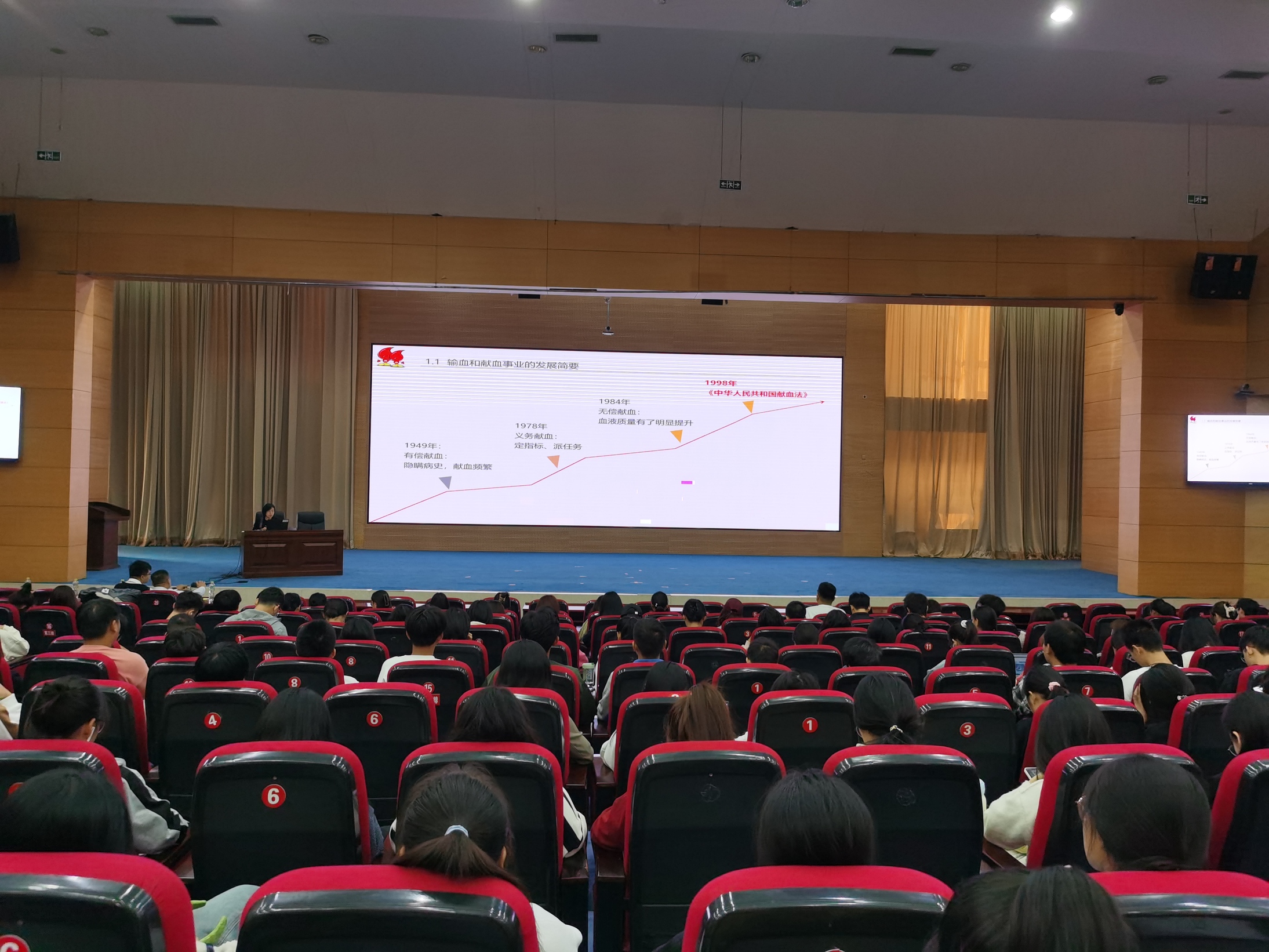上午九点,济宁市中心血站科普专家张天乐以《我的青春与献血同行》为主题向学生讲解了输血和输血事业的发展、血型知识、献血须知以及我市无偿献血相关政策,鼓励医学生们用专业知识宣传无偿献血,化身爱心使者拯救同胞生命。课上还设置了有奖互动问答环节,学生们踊跃回答问题,现场气氛活跃。