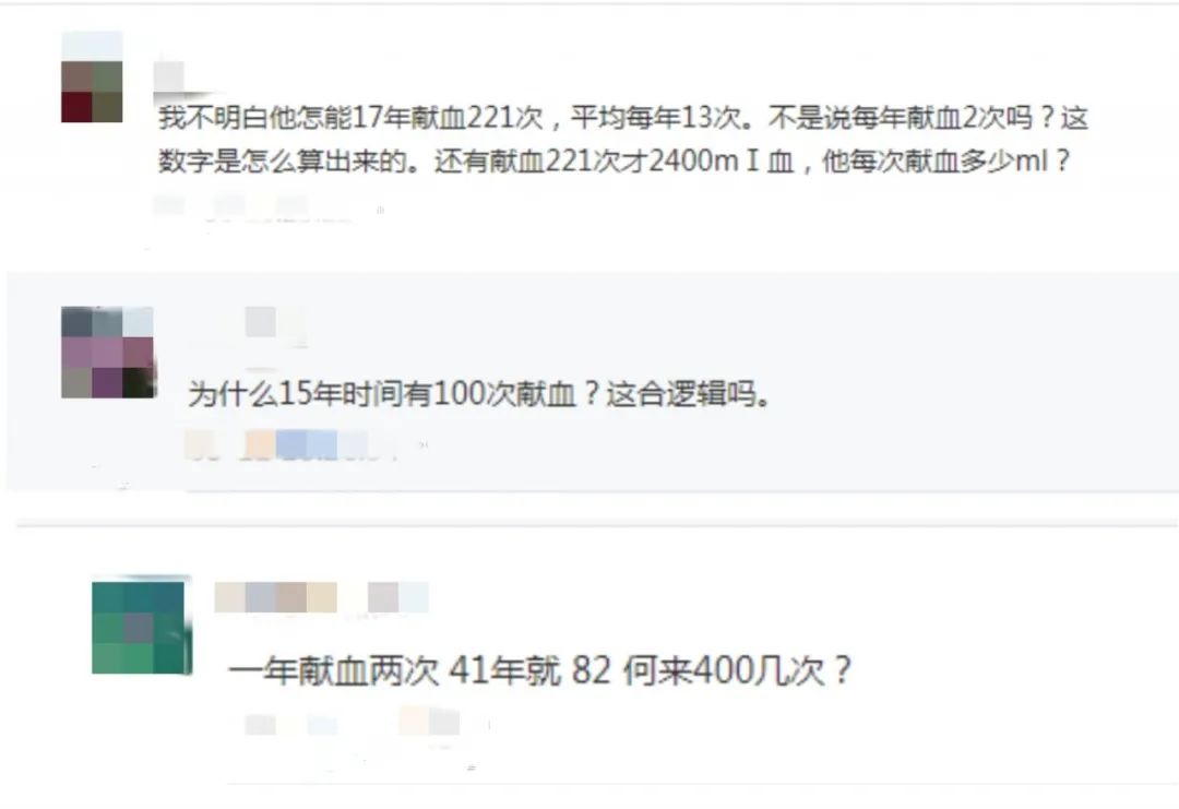 之前有网友留言表示当看到“献血100多次”时,一脸懵……献血100多次?200多次,这……怎么做到的?