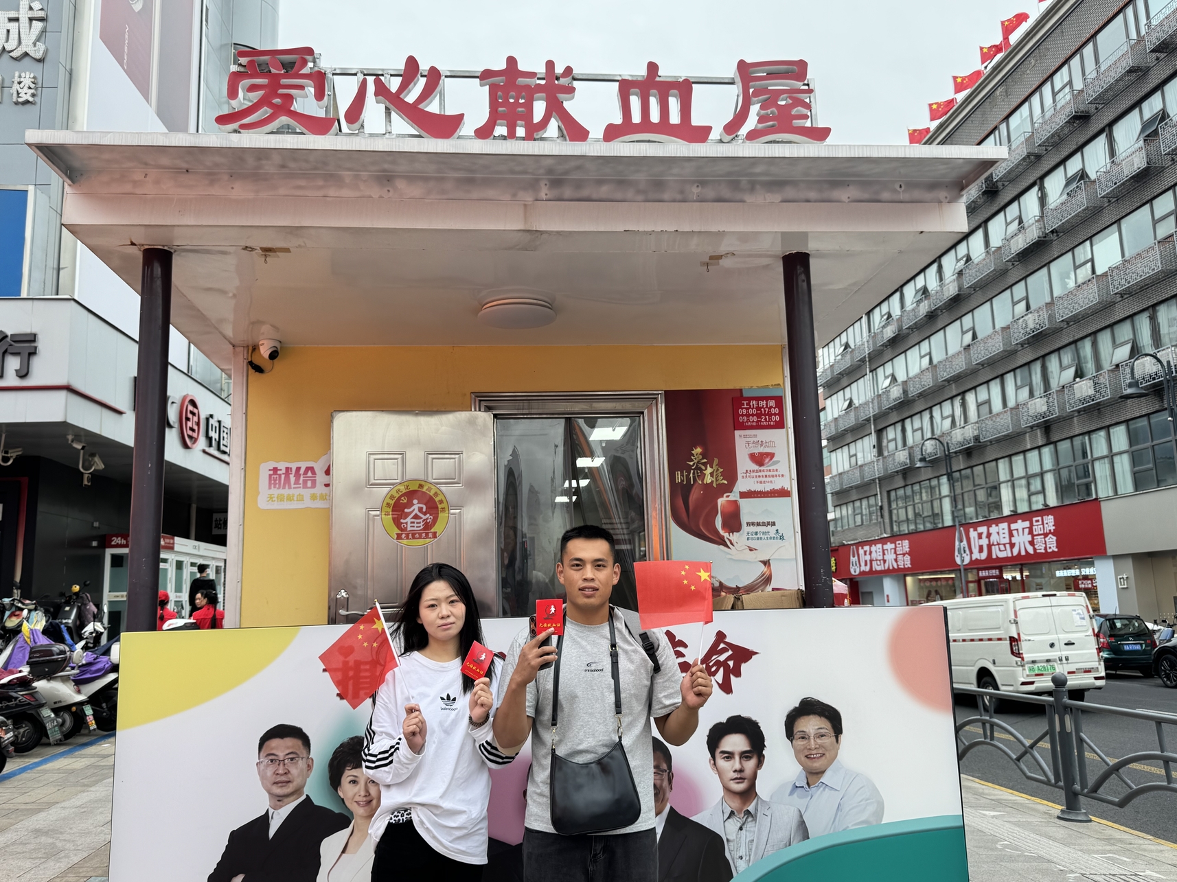 无独有偶,顾张熠和宋筱是来自南通职业大学的一对小情侣,10月1日,他们二人来到南大街献血屋,撸袖献血600mL。值得一提的是,他们已经连续两年参与国庆献血活动,顾先生表示:“国庆献血已经成为了一种习惯,也是我们年轻人对祖国的一种特殊献礼。”