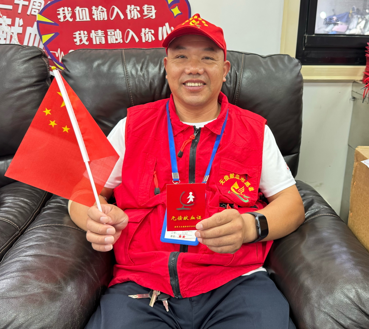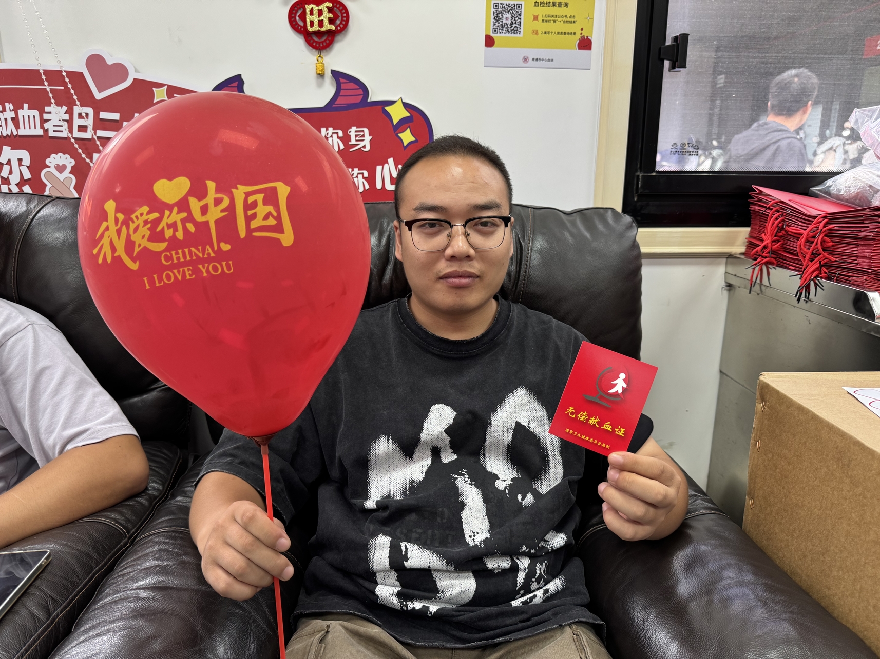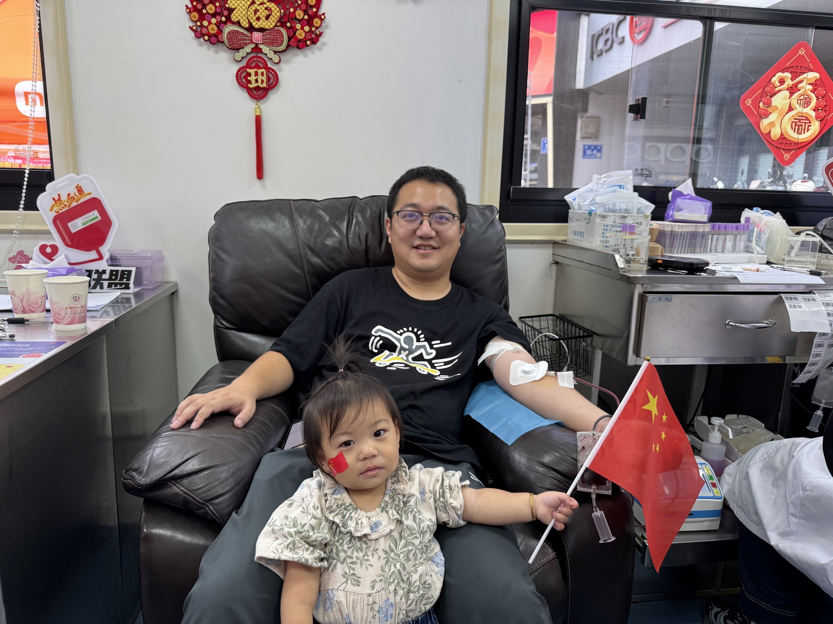 10月1日是祖国的生日,也是市民顾维炜的生日,他决定在这一天做件有意义的事。当天,他带着妻子、女儿来到南大街献血屋撸袖献血300mL,他说:“虽说是第一次献血,但想要献血的心愿却已萌生很久,今天总算圆了自己的献血梦。”