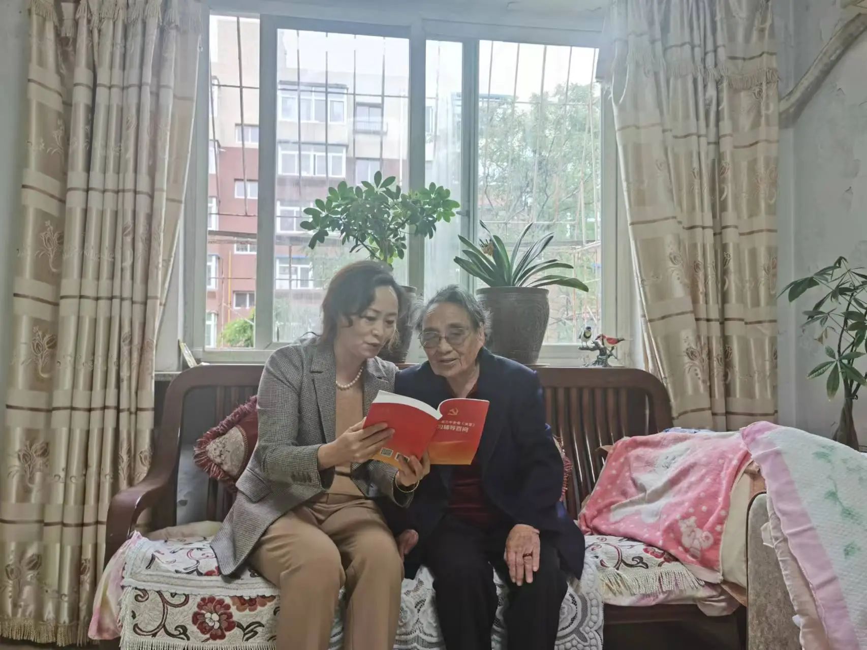 在离休老干部张嫣清家中,党委书记潘金霞同她亲切地交谈,并送上慰问品和节日的祝福。同时,工作人员陪同老干部还一起学习了党的二十届三中全会精神,深化对会议精神的学习领悟,确保离休干部在学习上“不缺课”,理论上“不漏学”,精神上“不掉队”。张阿姨感动地说:“血站还记得我们这些老干部,真的很感动!我会一如既往地关注支持中心血站的发展,希望中心血站发展得越来越好。”