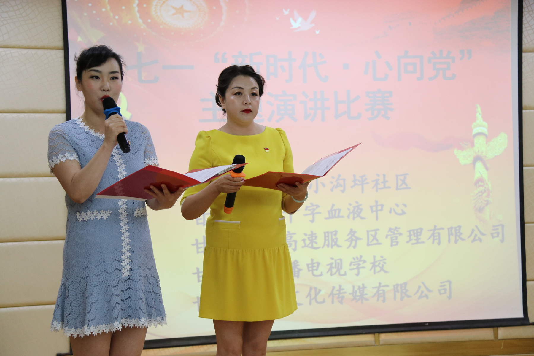 6月26日,甘肃省血液中心、盐场路街道小沟坪社区和甘肃华云高速服务区管理有限公司党总支、甘肃广播电视学校党支部等小沟坪社区内党组织,联合开展 “新时代·心向党” 庆七一主题演讲比赛。各位选手围绕“不忘初心、牢记使命”的主题,结合各自的工作实际,从奉献、担当、有为等方面做了精彩的演讲。 活动开始全体党员还重温了入党誓词。王娟同志代表血液中心参加比赛,并获得第二名。