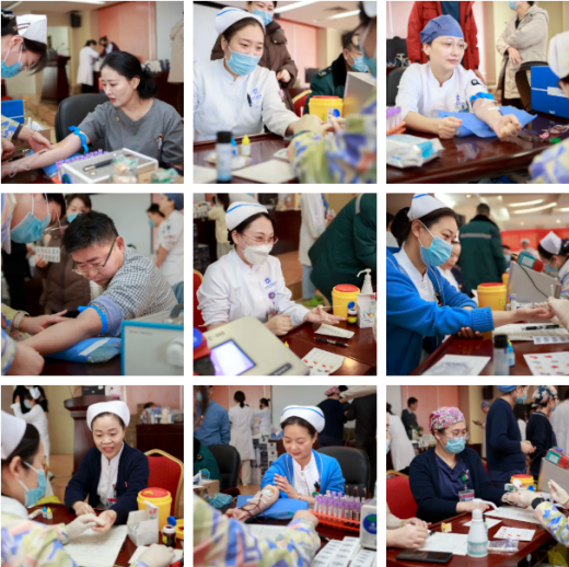 引人注目的是,各科室的护士长们结伴而来。她们身着整洁的护士服,头顶神圣的燕尾帽,这不仅象征着她们作为护理工作者的天职,更代表着她们在这场爱心接力中的担当。她们面带微笑,从容地伸出手臂,看着殷红的热血缓缓流入采血袋,眼神中满是坚定与温柔。她们的行动为科室年轻护士们作出了表率,她们也纷纷加入献血队伍,成为了现场一道靓丽的风景线。