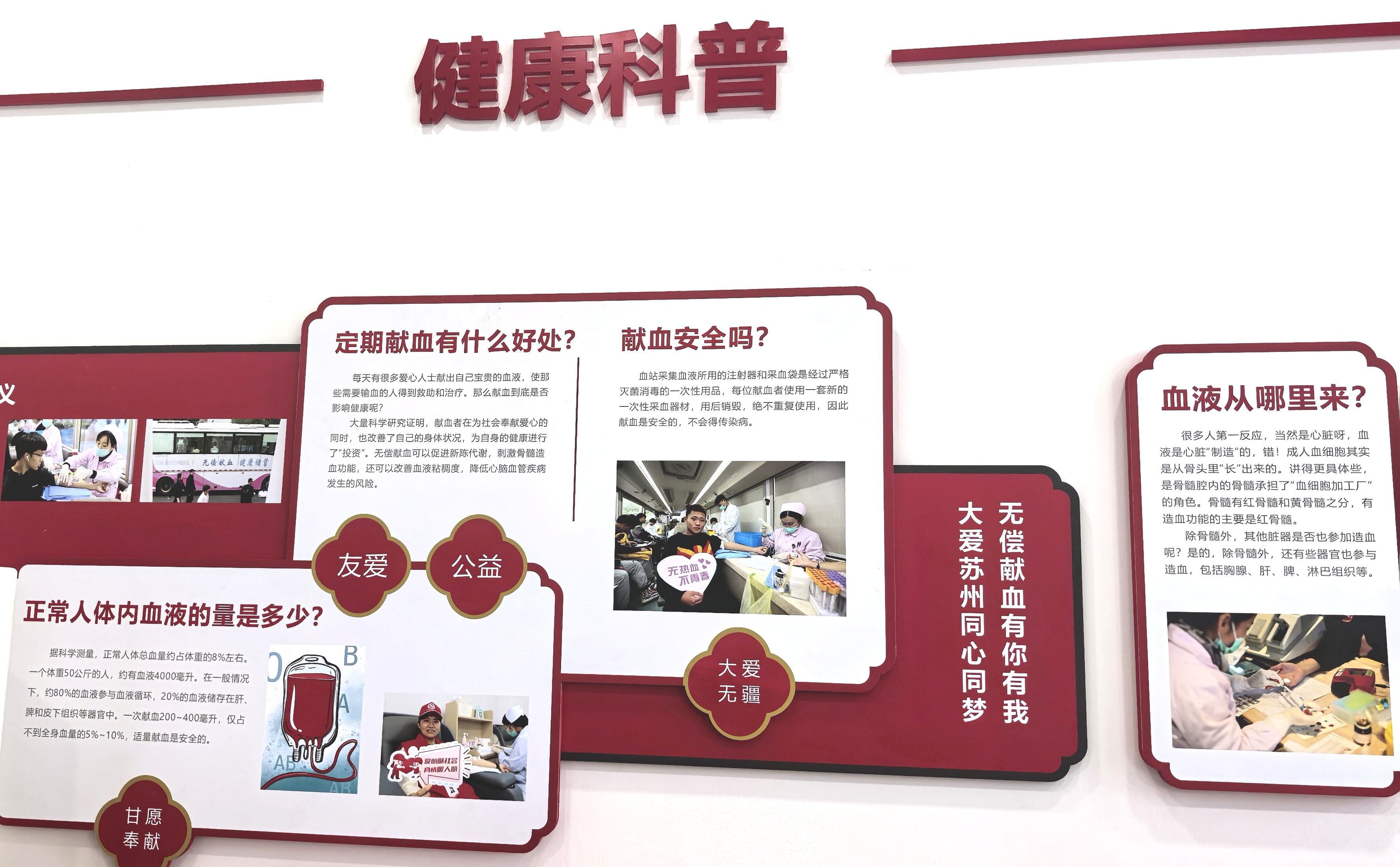 繁花爱心献血屋的党群园地和健康科普墙。