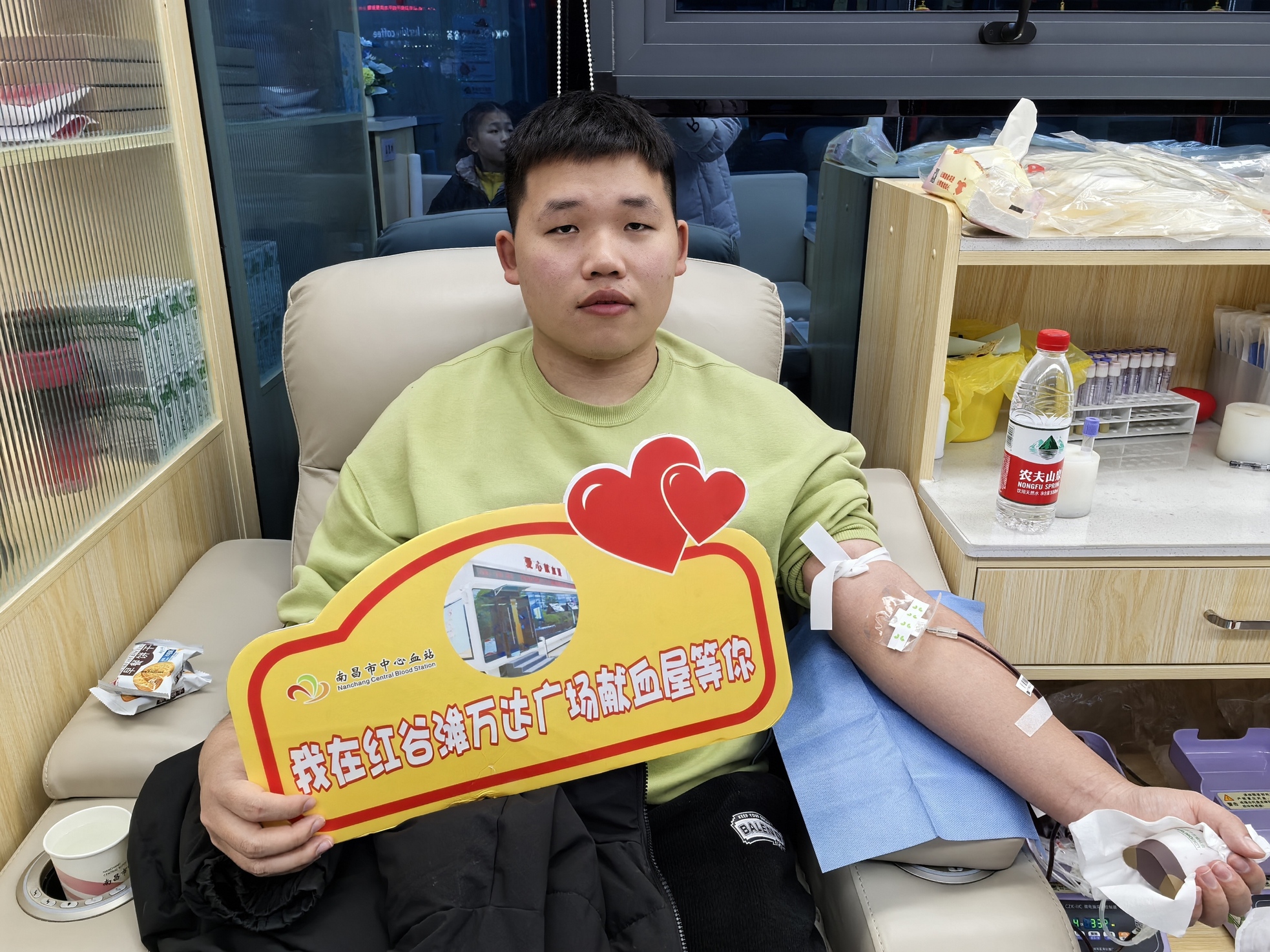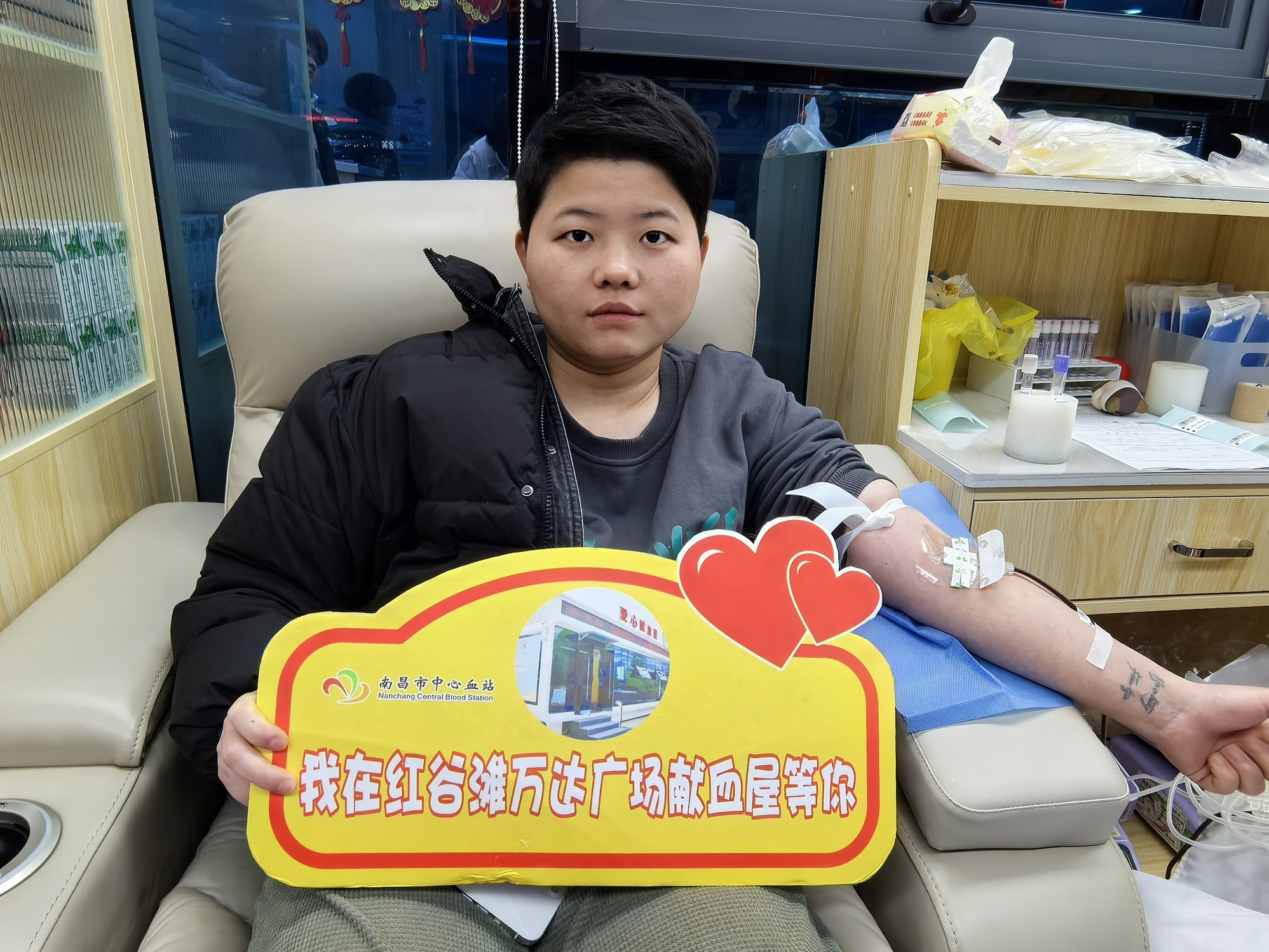 在一个普通的冬季周末,南昌市中心血站位于红谷滩万达广场1号门的献血房车迎来了几位无偿献血者。他们用实际行动传递温暖,用热血为生命助力,让这个冬日周末更加意义非凡。