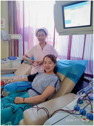 在捐献机采血小板时她激动地说:“没有共产党就没有我们今天的幸福生活,我想用献血的方式表达我对党的热爱之情。