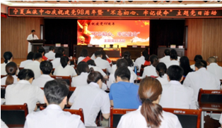 7月1日下午,宁夏血液中心举办了庆祝建党98周年暨“不忘初心、牢记使命”主题党日活动。中心全体职工参加了此次活动。赵生银主任主持了会议。