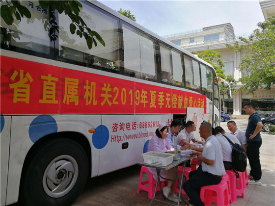 8日上午,海南省血液中心献血车驶入海南省委海南广场办公区,拉开了海南省直属机关2019年夏季无偿献血爱心活动的帷幕。