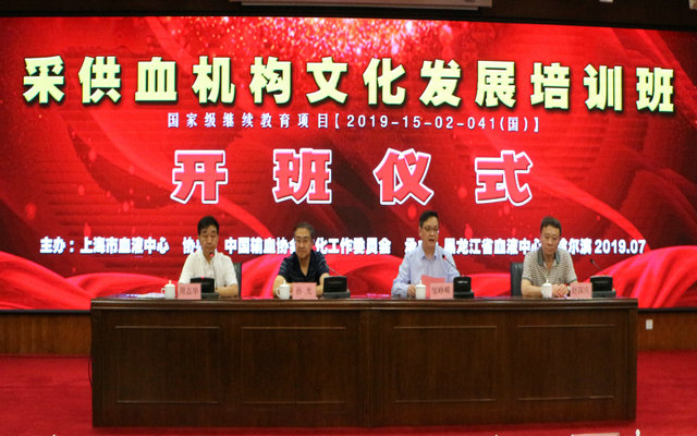 7月15日上午,由上海市血液中心主办、中国输血协会文化工作委员会协办、黑龙江省血液中心承办的国家级一类继续教育项目《采供血机构文化发展培训班》在哈尔滨市召开,来自全国各地25个省、直辖市、自治区84家采供血机构的193名代表参加培训,上海市血液中心、上海市血液管理办公室及郊县血站共计17名党政工团的干部参加培训,开班仪式由武汉血液中心党委书记、中国输血协会文化工作委员会主任委员周志华主持。