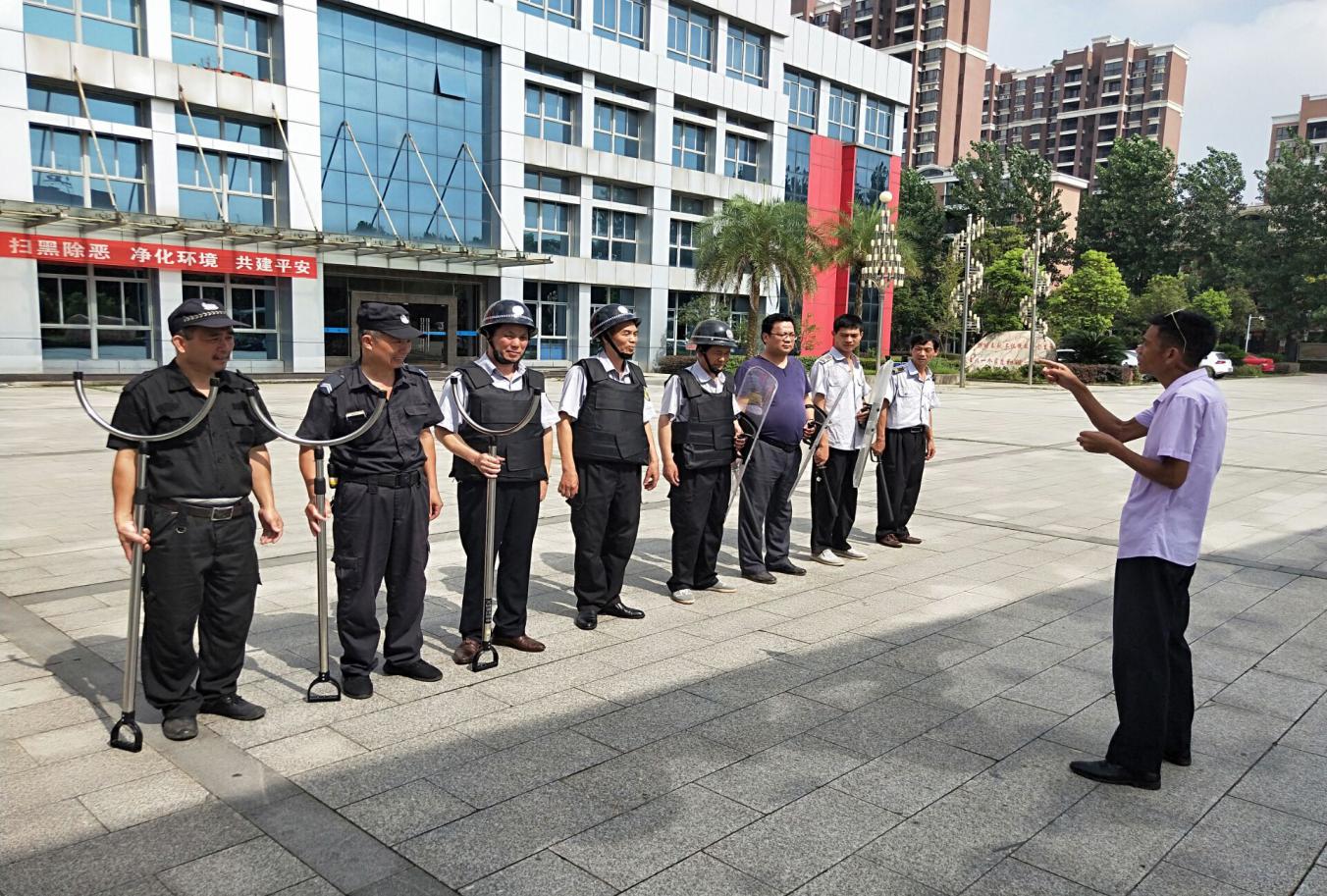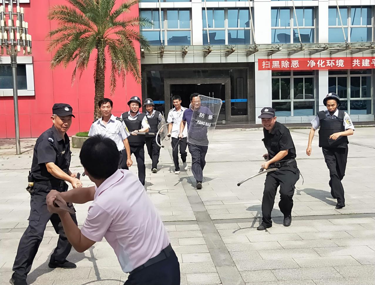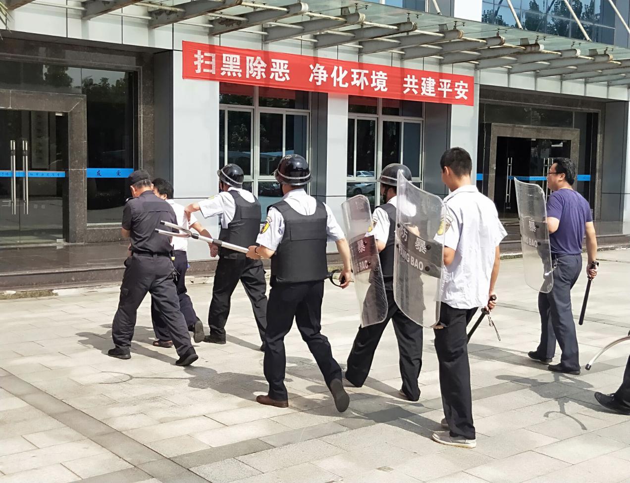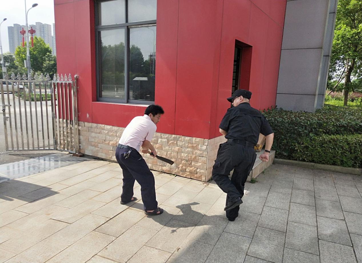 模拟演练背景:2019年7月18日上午9:30,在中心南区大门,有一名不明身份外来人员不听安保人员劝说,持凶器强行闯入,危害到人员安全、血液安全。中心迅速启动治安保卫应急预案,经治安保卫人员劝说无效后,对其进行强制控制。