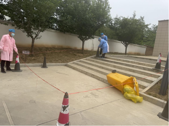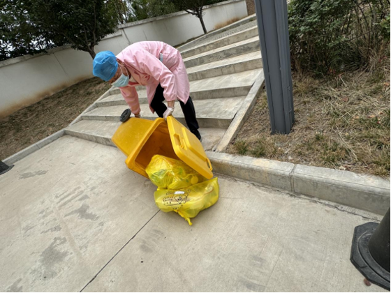 本次演练模拟医疗废弃物转运过程中,意外发生转运工具倾倒,医疗废物部分散落地面,部分包装袋破损,造成医疗废物泄露的场景。事故发生后,现场工作人员立即停止转运操作,按照规定程序,迅速规范展开一系列应急处置流程。整个演练过程紧张有序,各环节衔接紧密,参演人员严格、高效完成应急处置任务。