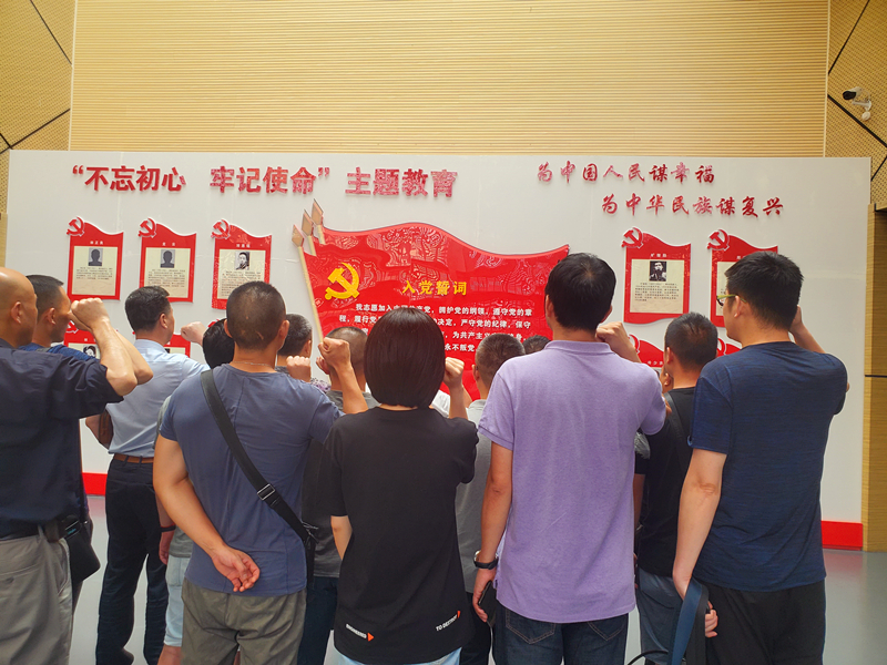 参观结束后,支部书记董韬带领全体党员列队面向党旗,重温入党誓词,在党旗下再次许下了共产党员的庄严承诺。中心党委委员、副主任郑祥顺全程参加了此次主题党日活动。