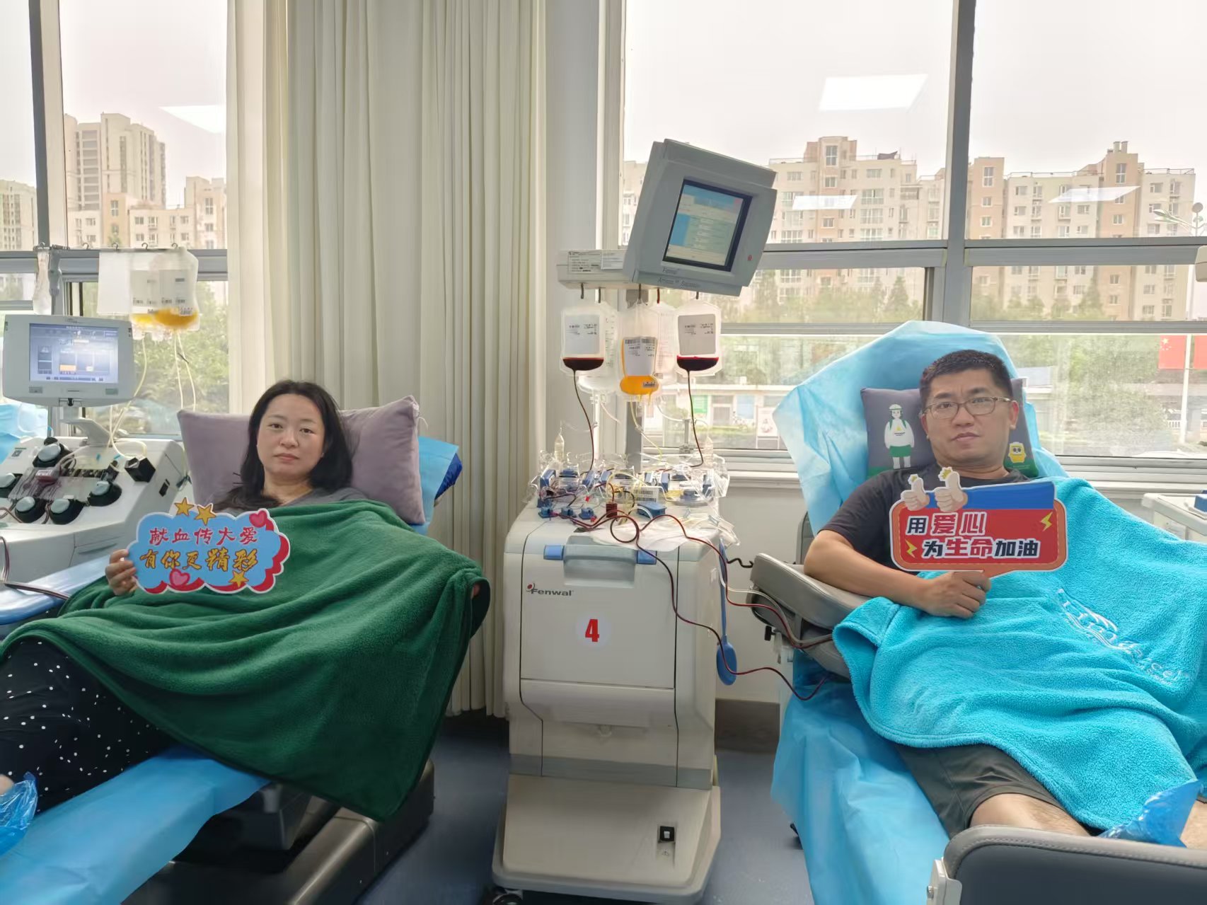 夫妻二人均为日照市莒县人民医院的医务工作者,孟医生是县医院重症监护室主任,孟主任多年工作在一线重症科室,深知及时输血对抢救病人的急迫性与重要性,他的理念是“定期适量的献血,不仅可以促进身体的新陈代谢,还可以刺激骨髓造血,利人利己”。近年来他一直坚持参加无偿献血,共计捐献血液21次累计7600毫升,今天是孟主任本年度第5次捐献成分血。