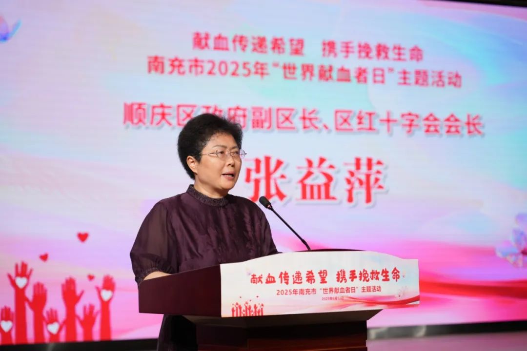 上午10点,南充市第22个世界献血者主题活动正式开始。一段公益宣传视频率先播放,生动展现了无偿献血对于拯救生命的重要意义,让在场观众深刻感受到了这份爱心传递的力量。顺庆区政府副区长、区红十字会会长张益萍上台致辞,对长期支持无偿献血事业的各方表达感谢与敬意。并呼吁大家以热血践行初心,让红十字精神发扬光大,鼓励更多人参与到无偿献血中来。