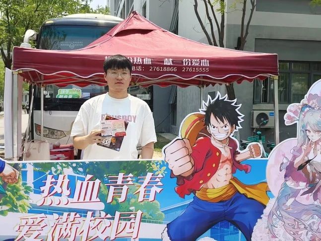 “我是看《海贼王》长大的,动画教会我什么是热血青春、什么是人生伙伴。我带着这些从动画中感悟出的道理认真地生活、友善地对待周围的人。参与无偿献血活动也是如此,希望我的绵薄之力能够帮助到未曾谋面的伙伴。”一位高校学子对工作人员说到。